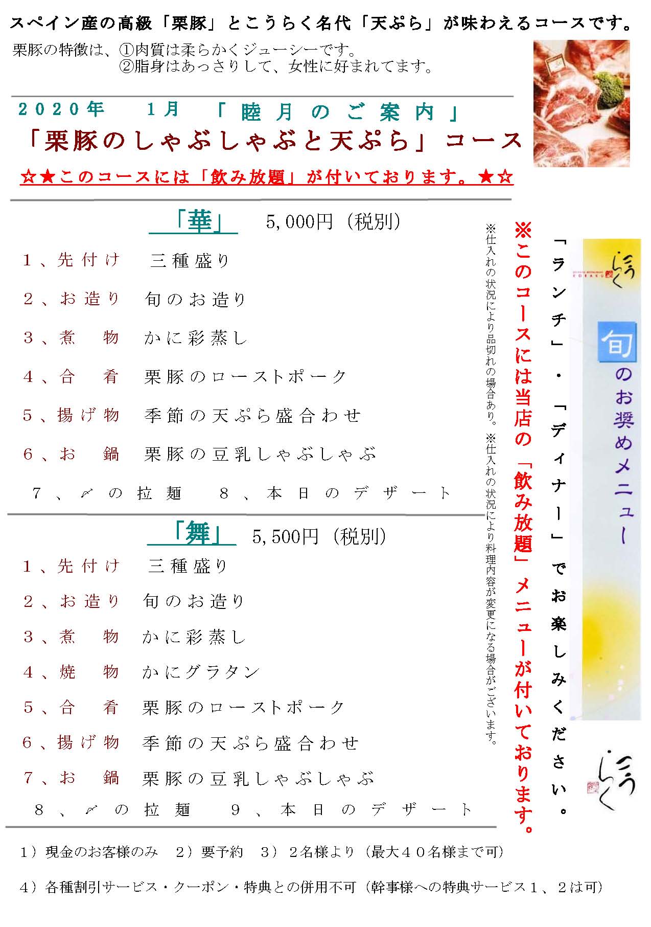 「栗豚のしゃぶしゃぶと天ぷら」コース予約専用窓口 or  [ネ ッ ト で 予 約 す る]