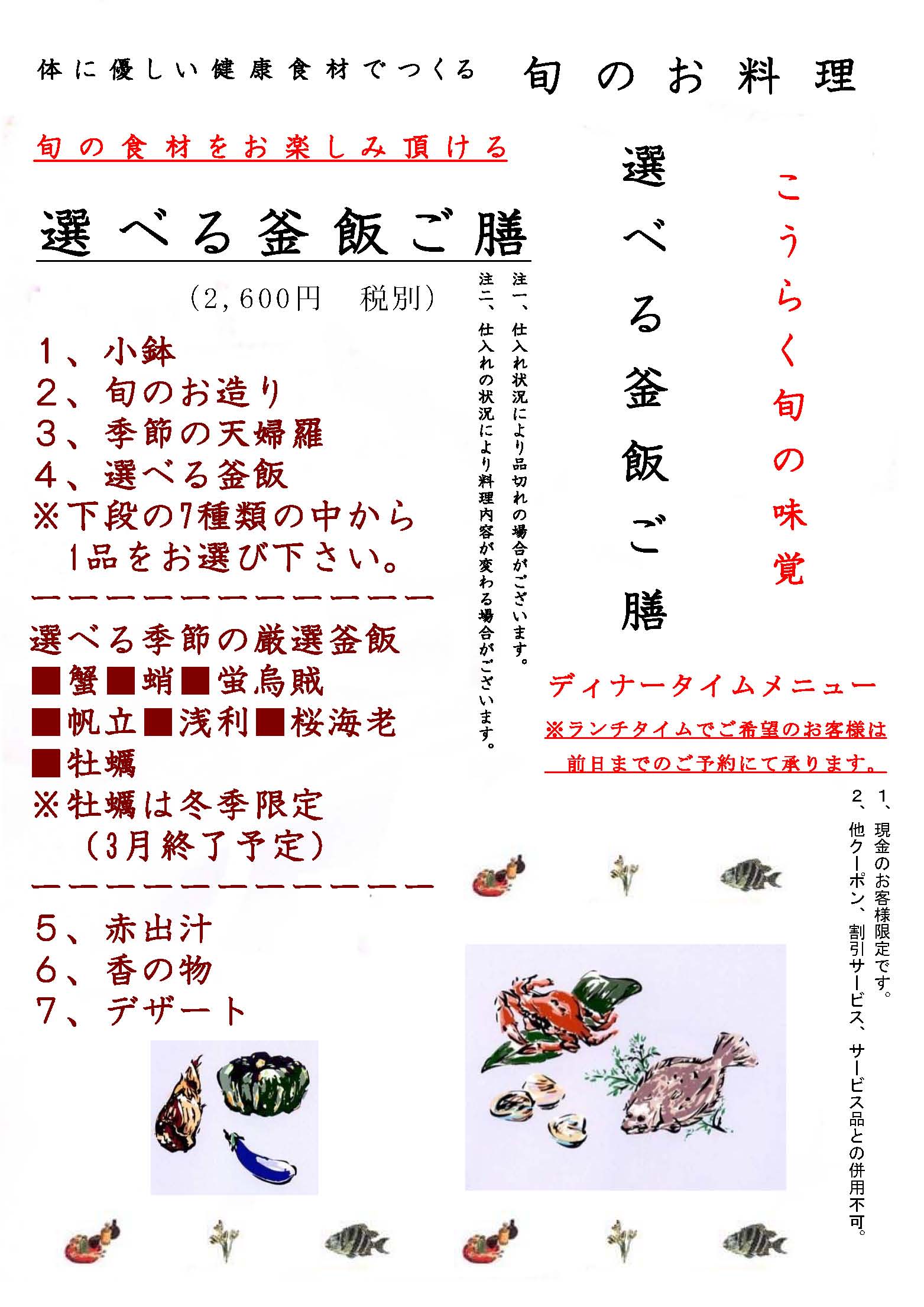 「選べる釜飯会席」コース の