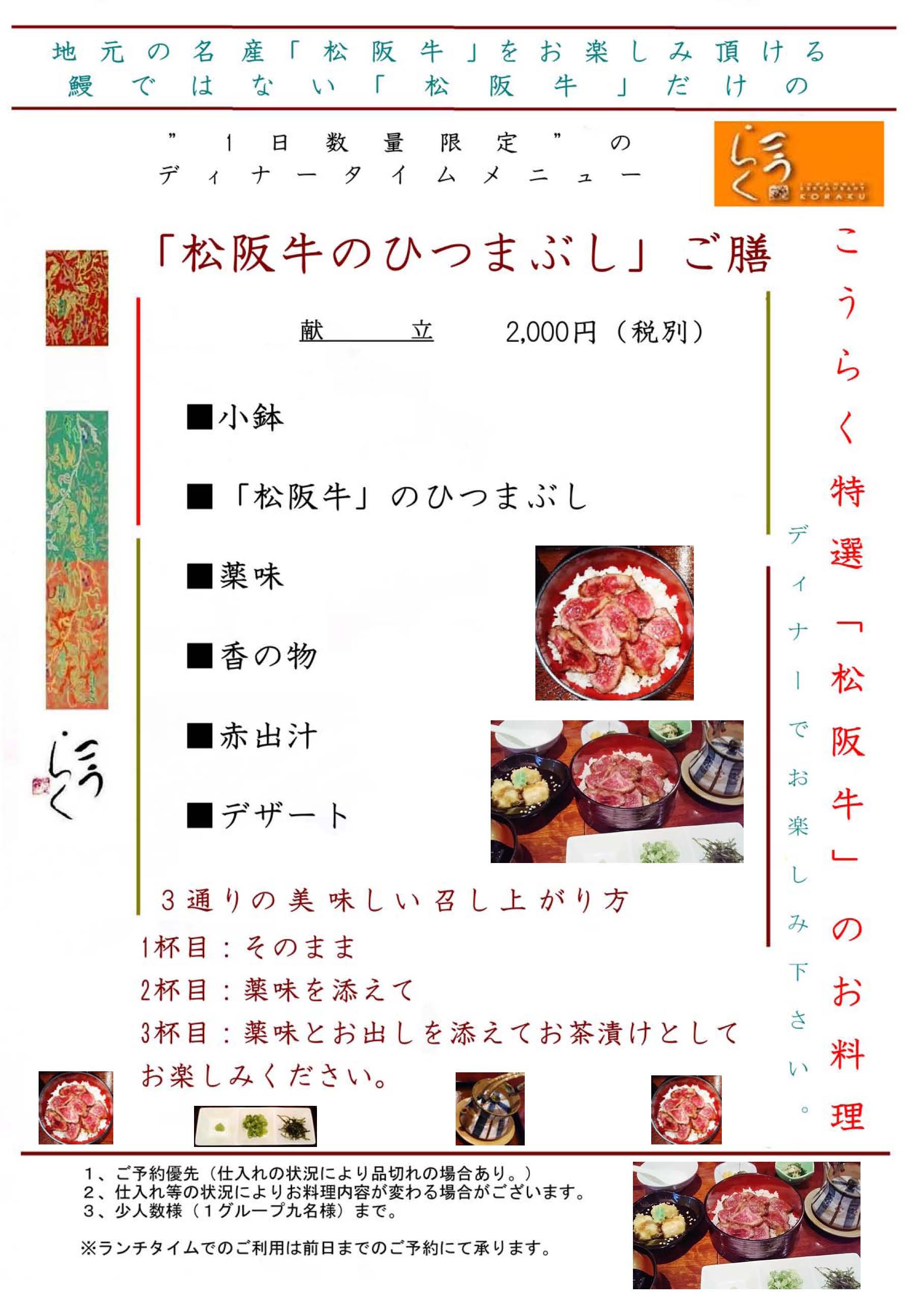 「松阪牛のひつまぶし」ご膳 のご予約・お問合せは TEL:050-6883-3951 または メール:「 松阪牛のひつまぶし」ご膳 予約専用窓口 or [ネ ッ ト で 予 約 す る] TOPページへ戻る