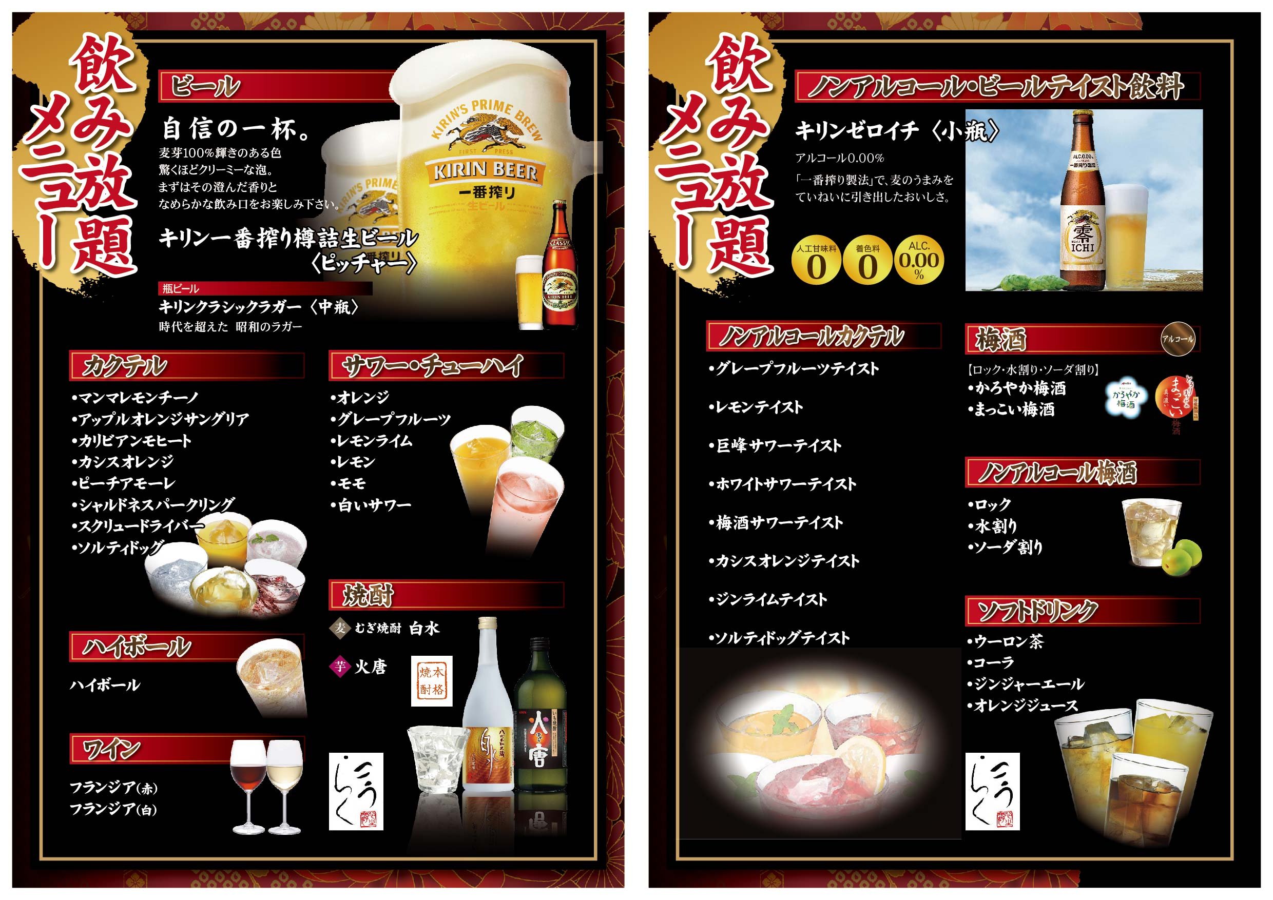 「飲み放題」「飲み放題コミコミコース」の
